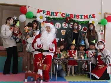 クリスマスについて絵本を見たり、🎵あわてんぼうのサンタクロースの歌をうたったり、みんなでクリスマスのリース作りをしました。その後、一足早く小牛田子育て支援センターにサンタクロースがやってきて、1人1人にクリスマスプレゼント渡してくれました。サンタクロースと保護者のじゃんけん大会もあって、子どもだけでなく大人も楽しめたひと時になりました。